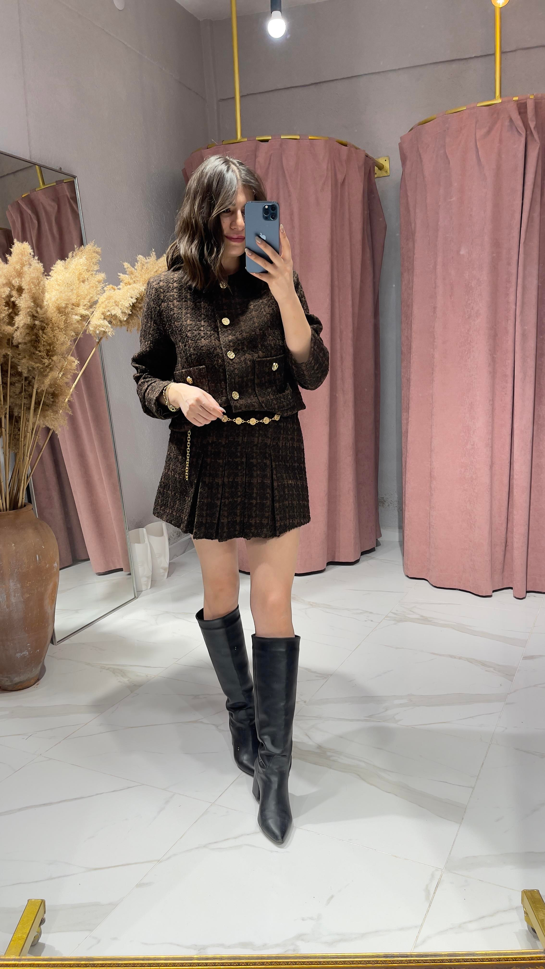 DÜĞME DETAYLI KAHVE TUVİT CEKET