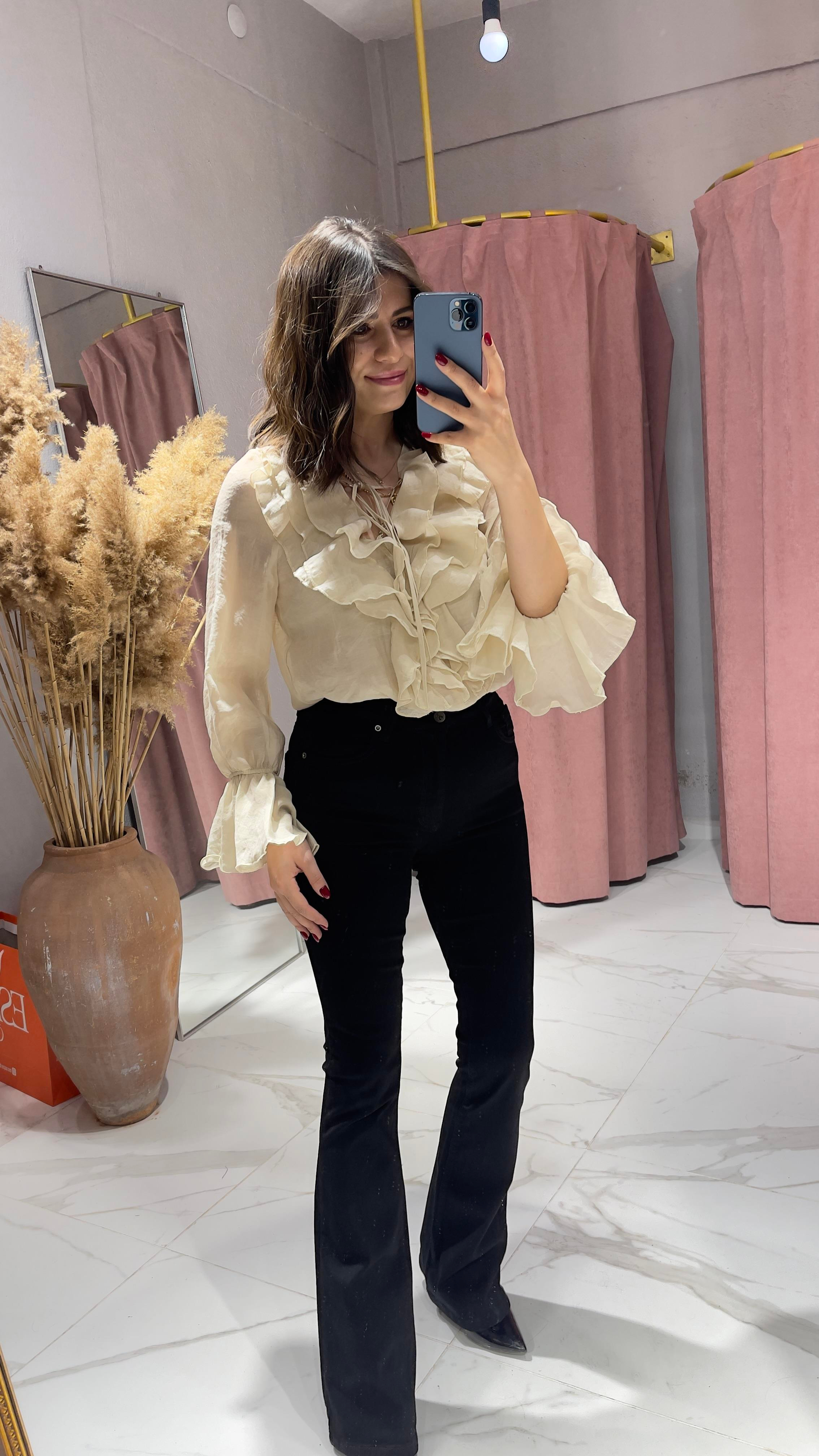 FIRFIRLI TRANSPARAN KREM BLUZ