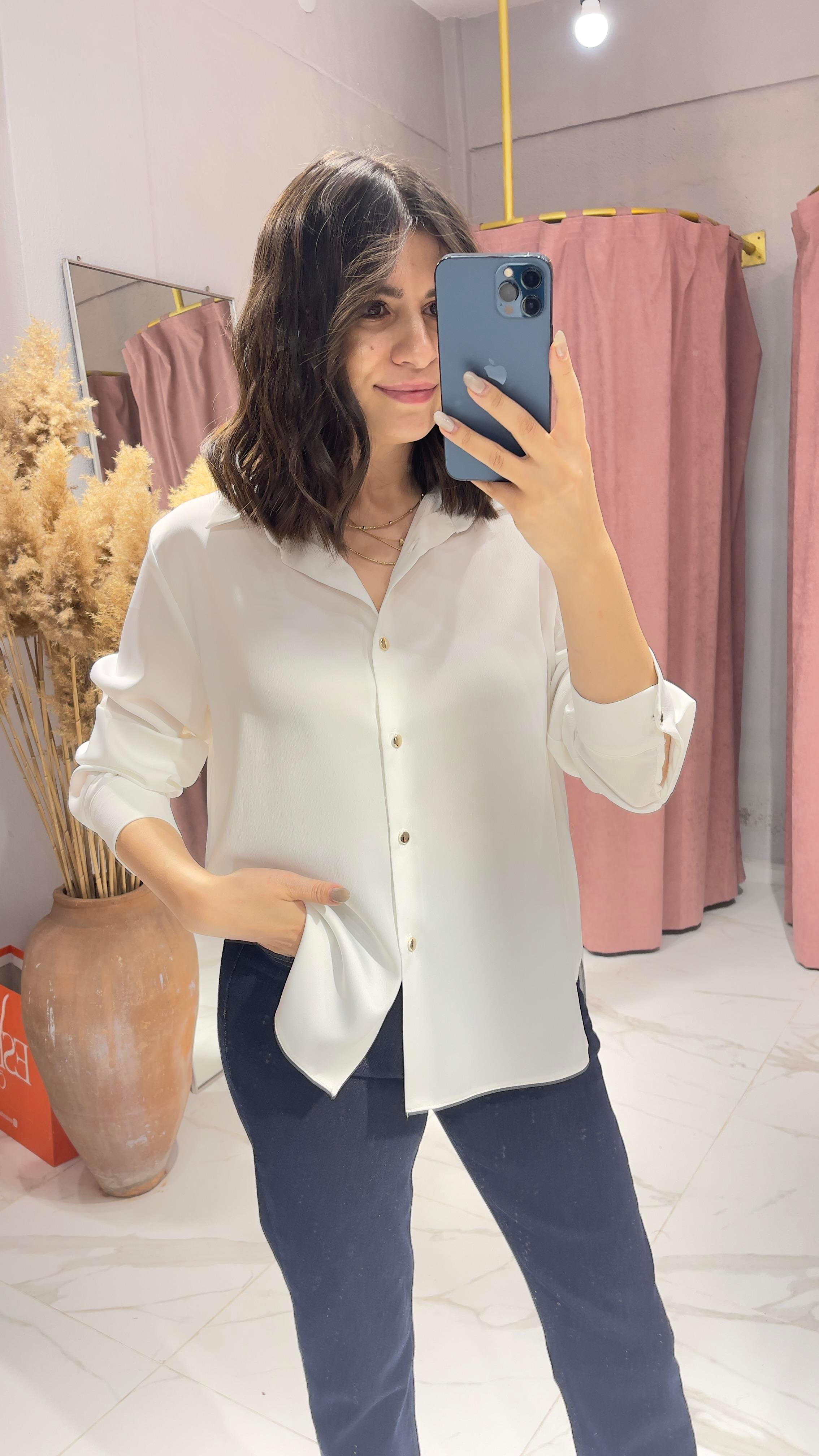 GOLD DÜĞMELİ BEYAZ SATEN GÖMLEK