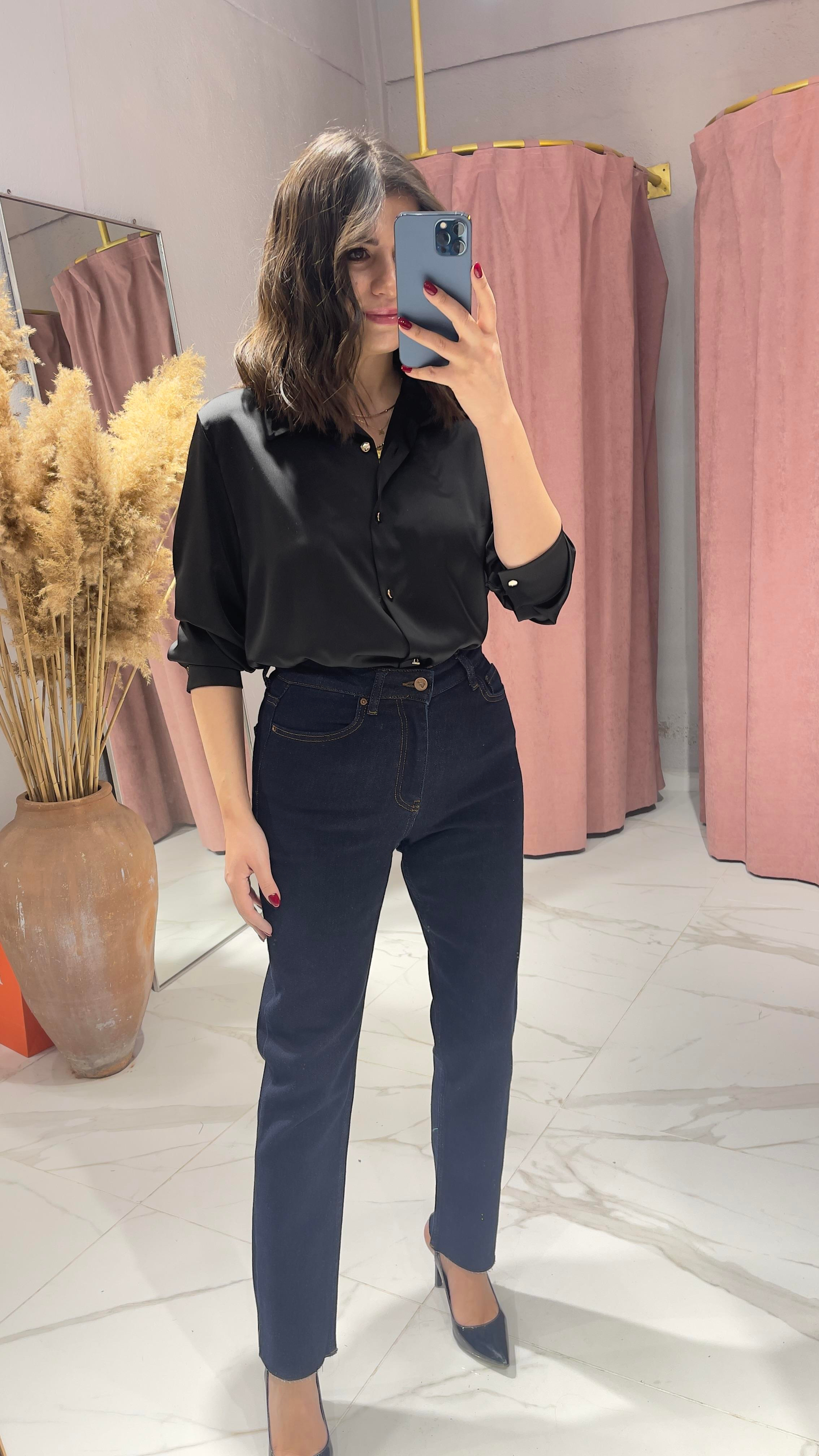 GOLD DÜĞMELİ SİYAH SATEN GÖMLEK