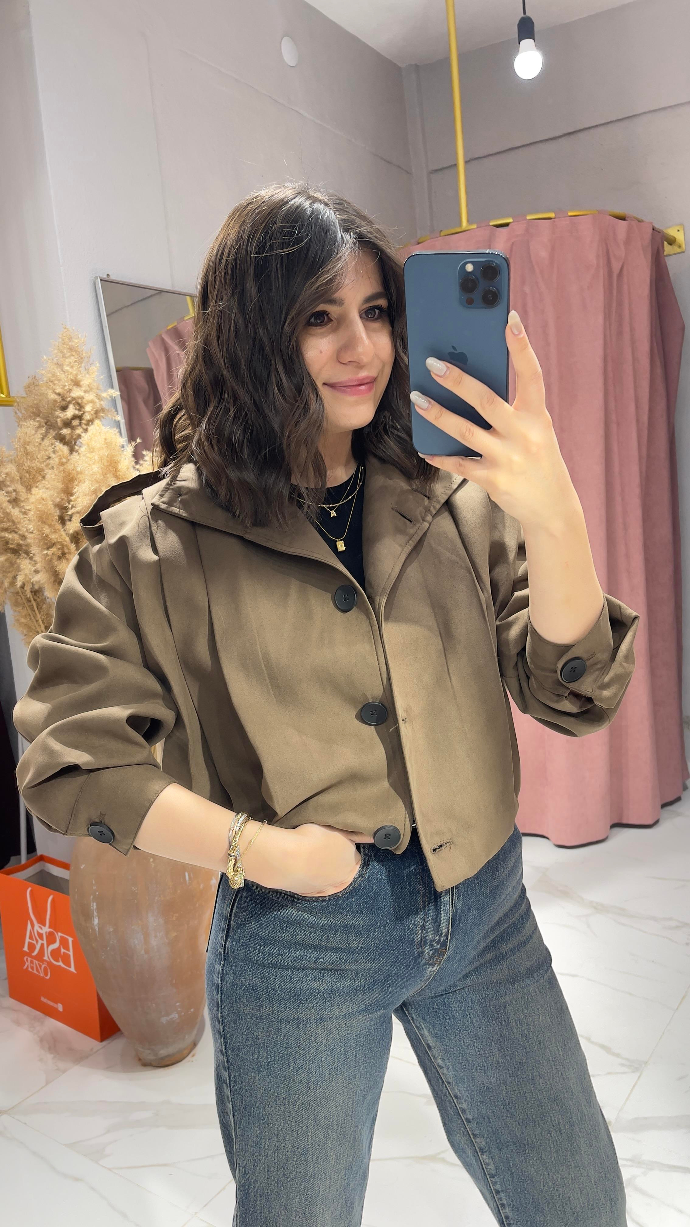 HAKİ SÜET PENS DETAYLI KISA CEKET