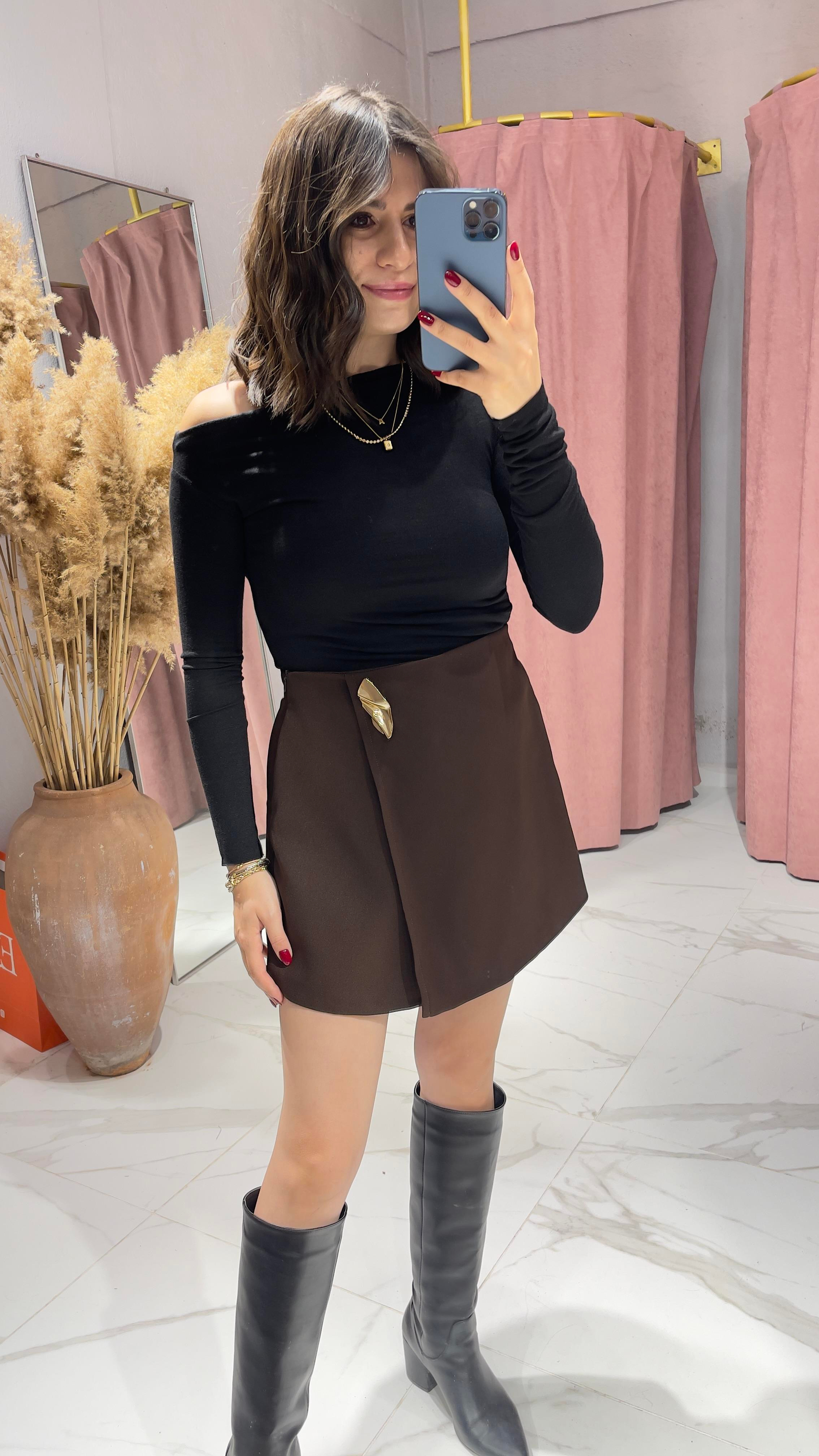 KAYIK YAKA ASİTMETRİK KESİM SİYAH BLUZ