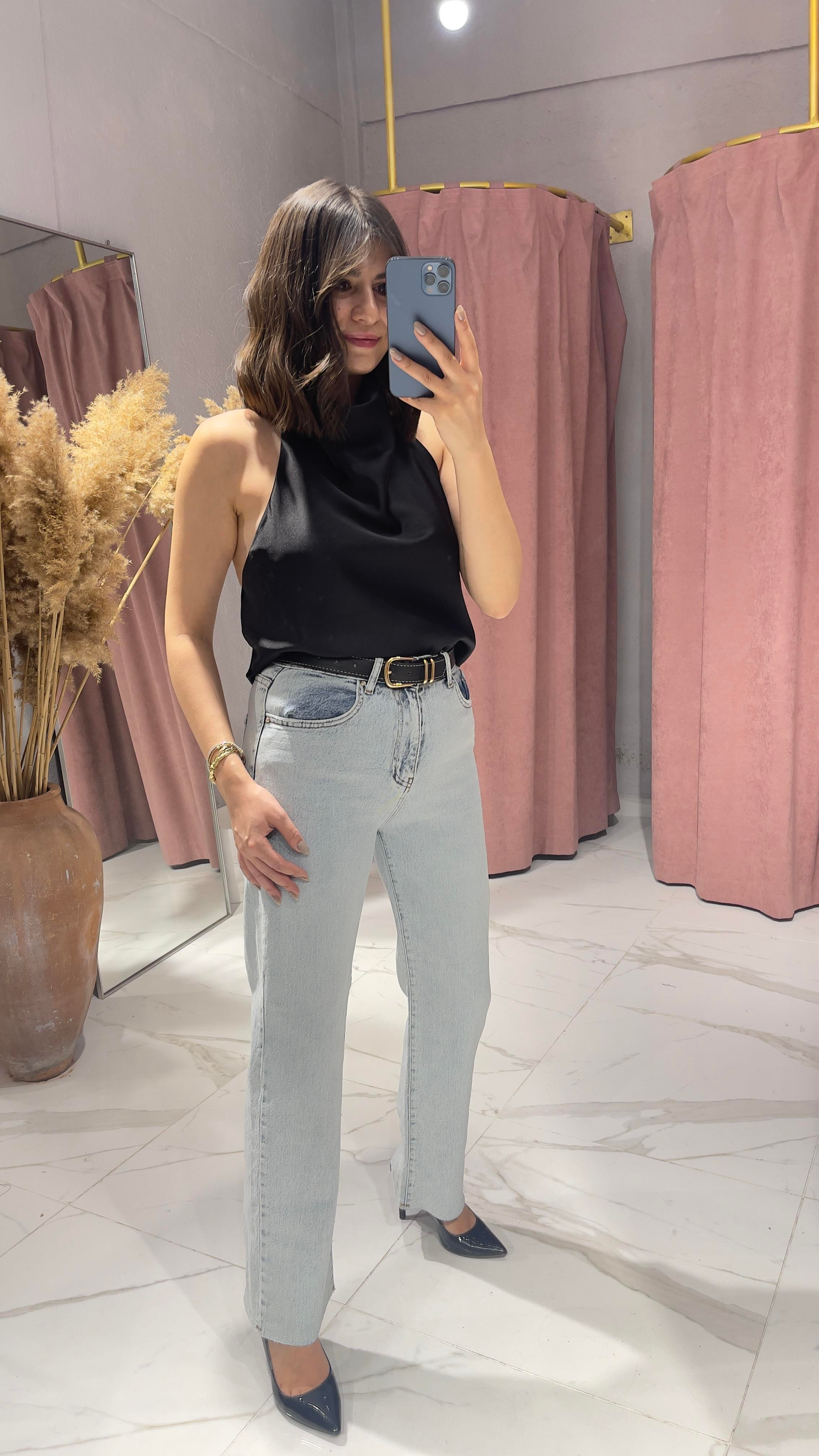 KEMERLİ KESİK PAÇA BUZ MAVİSİ JEAN
