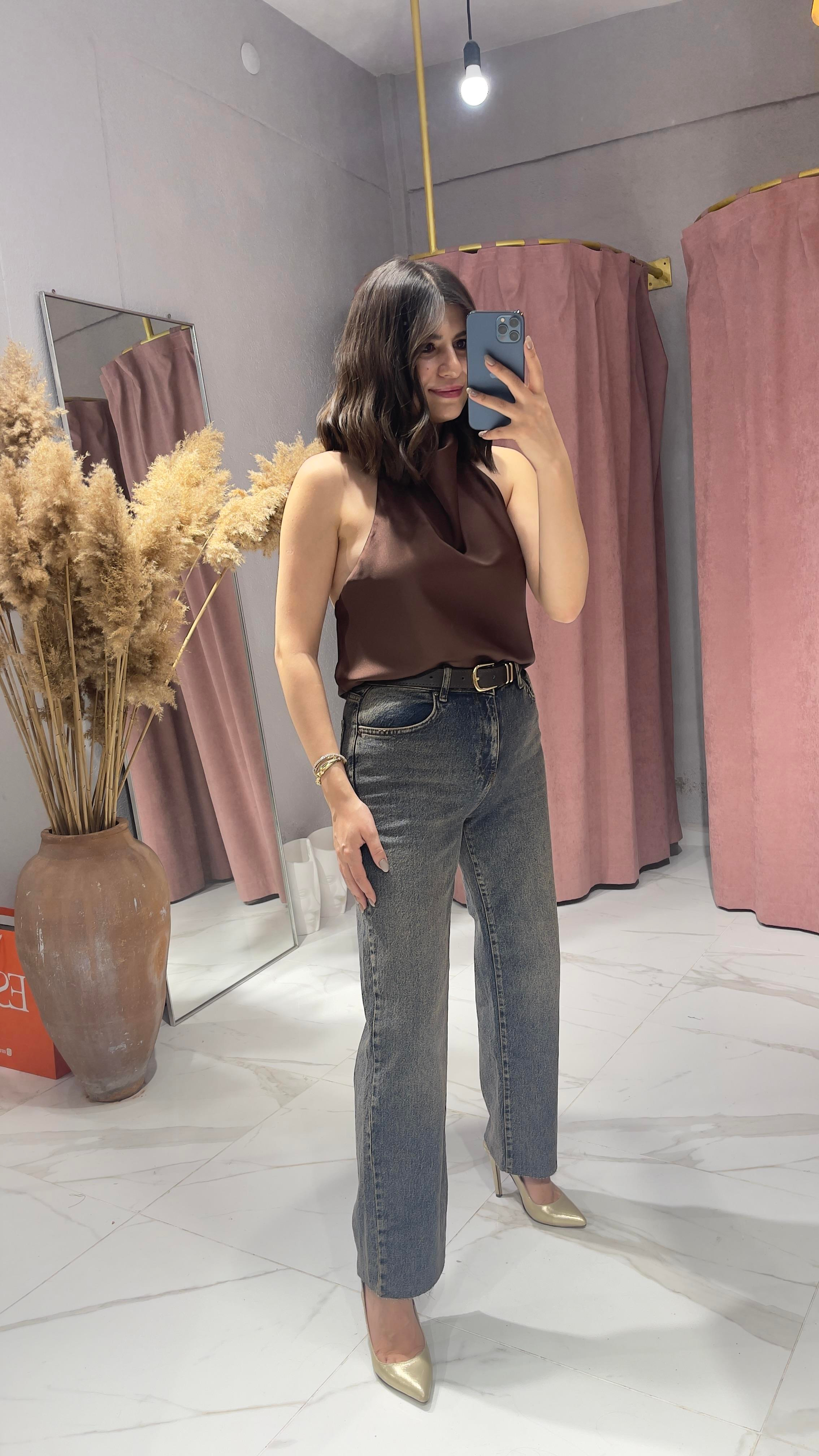 KEMERLİ KESİK PAÇA BUZ MAVİSİ JEAN