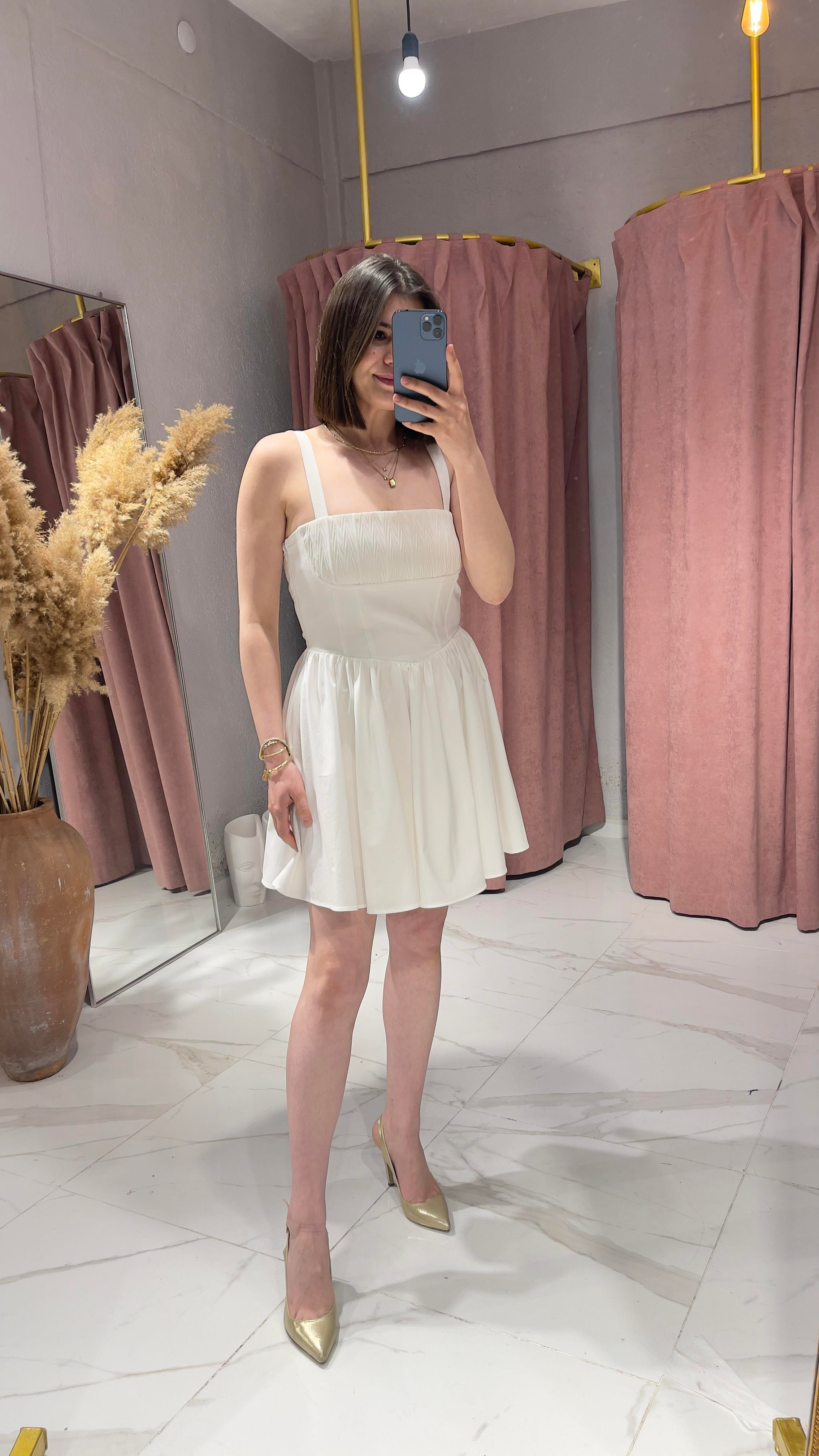 KORSE MODEL BEYAZ MİNİ ELBİSE