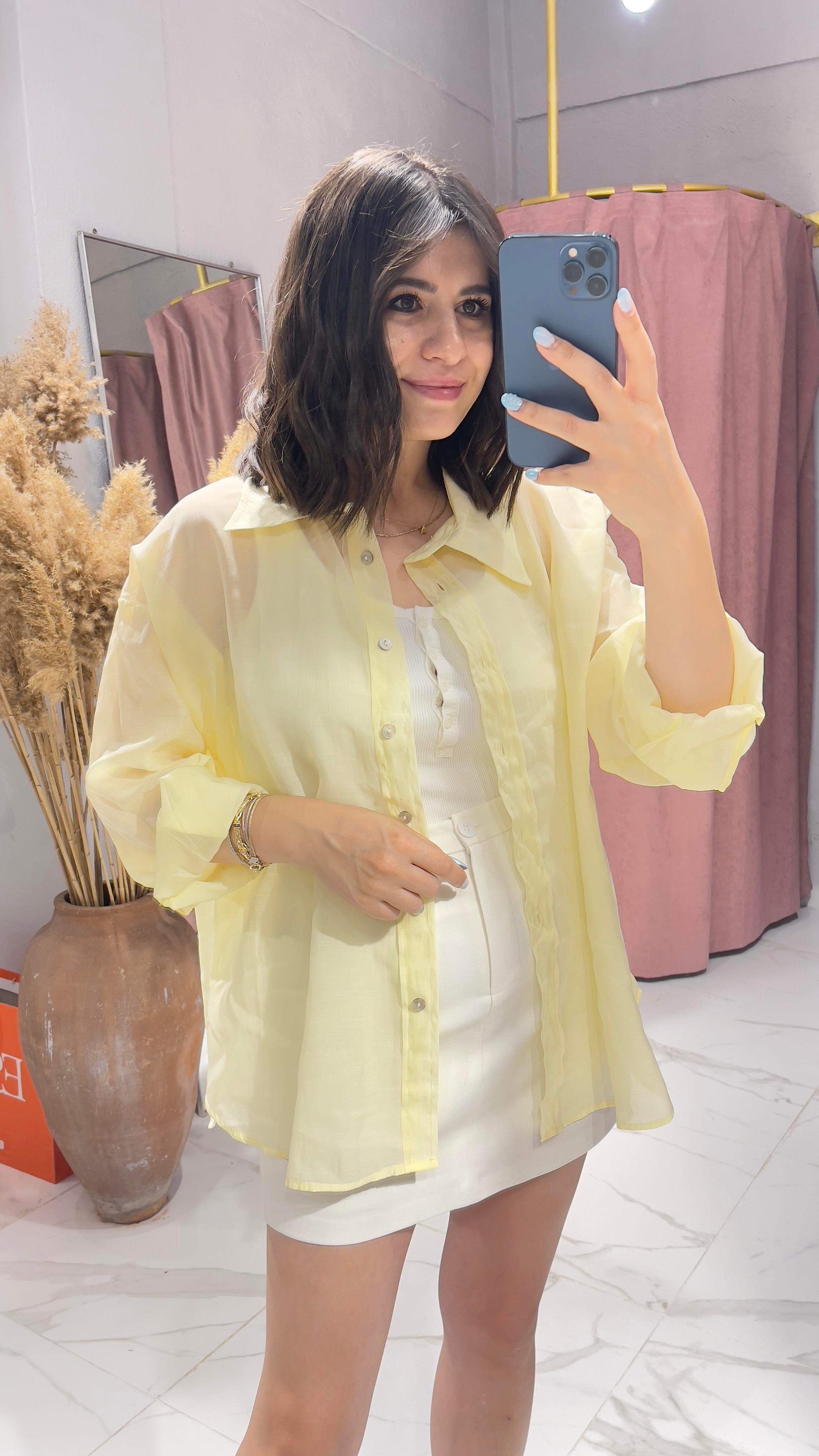 OVERSİZE İPEKSİ SARI GÖMLEK