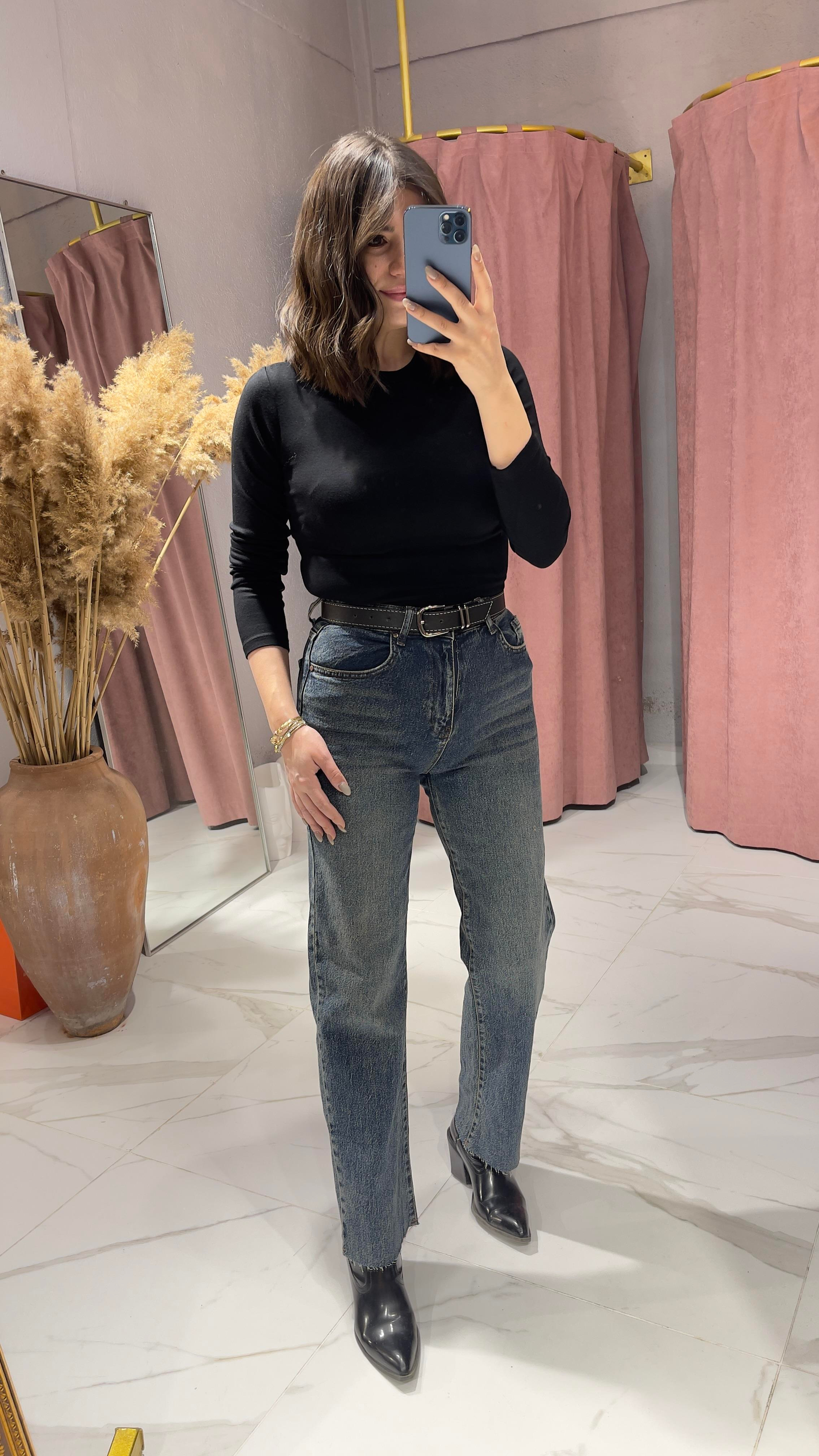 PAÇA KESİMLİ MAVİ KAR YIKAMA PANTOLON