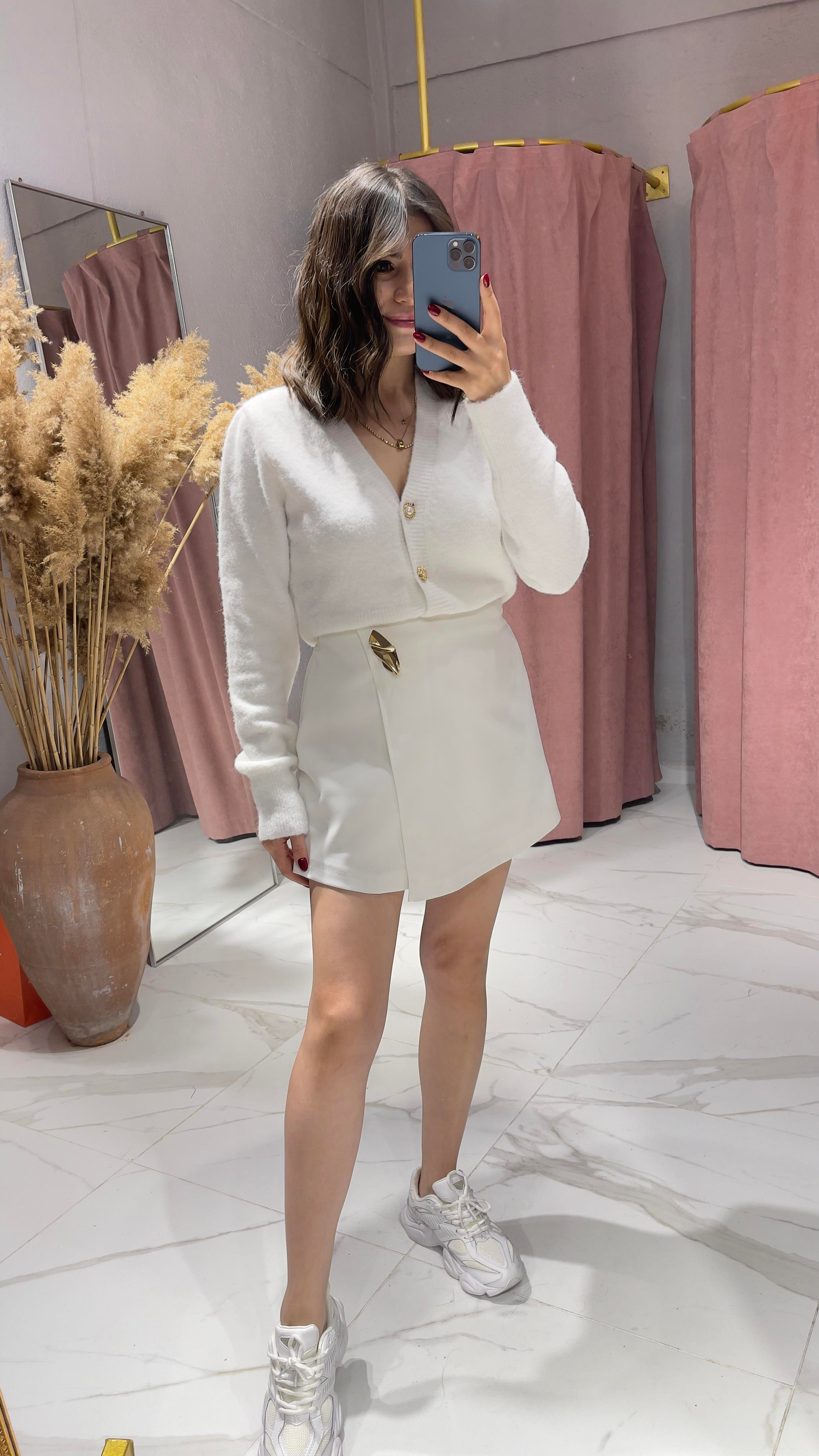 TOKA DETAYLI BEYAZ ŞORT ETEK