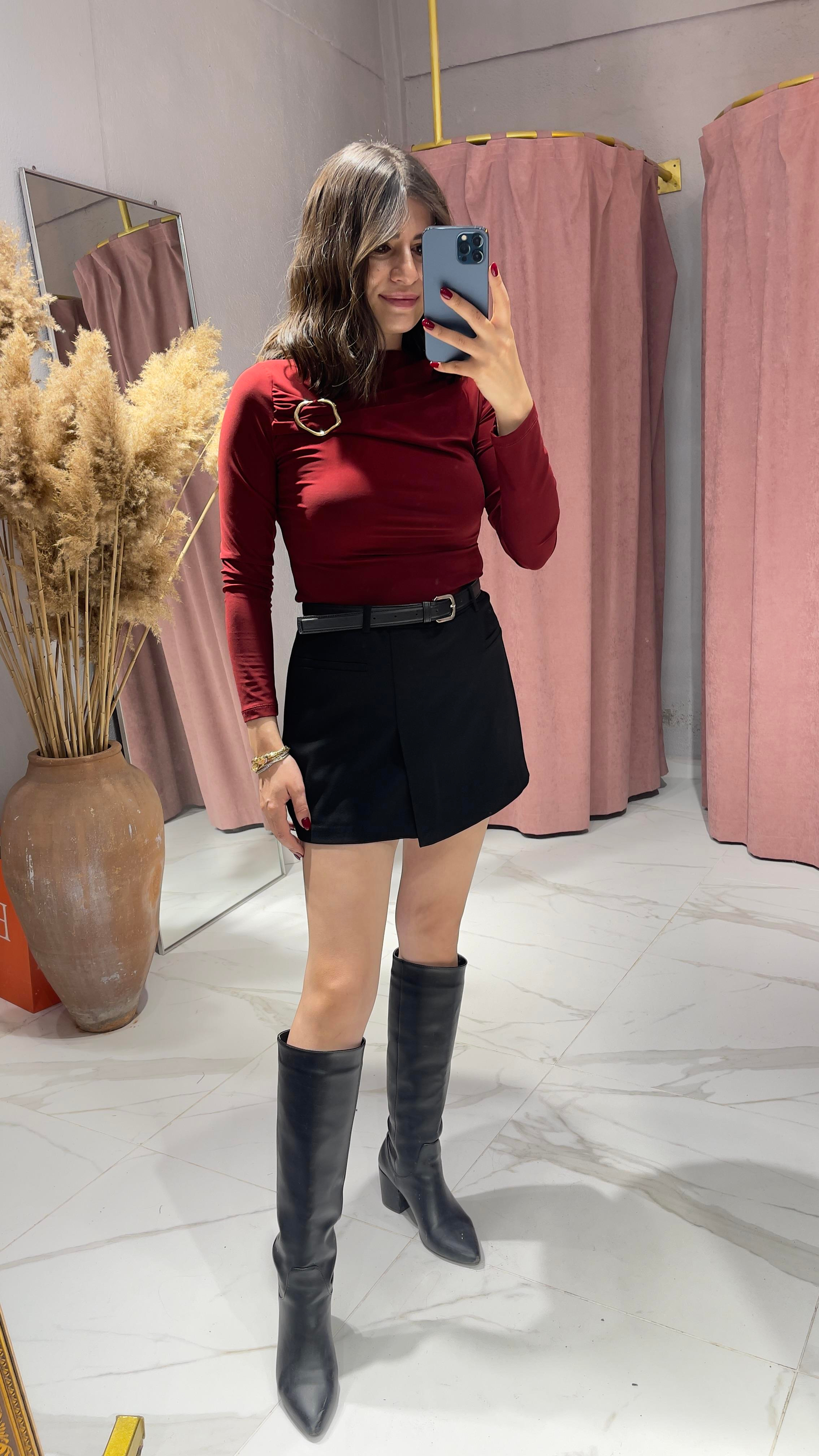 TOKA DETAYLI KAHVE BLUZ TOKA DETAYLI SİYAH BLUZ