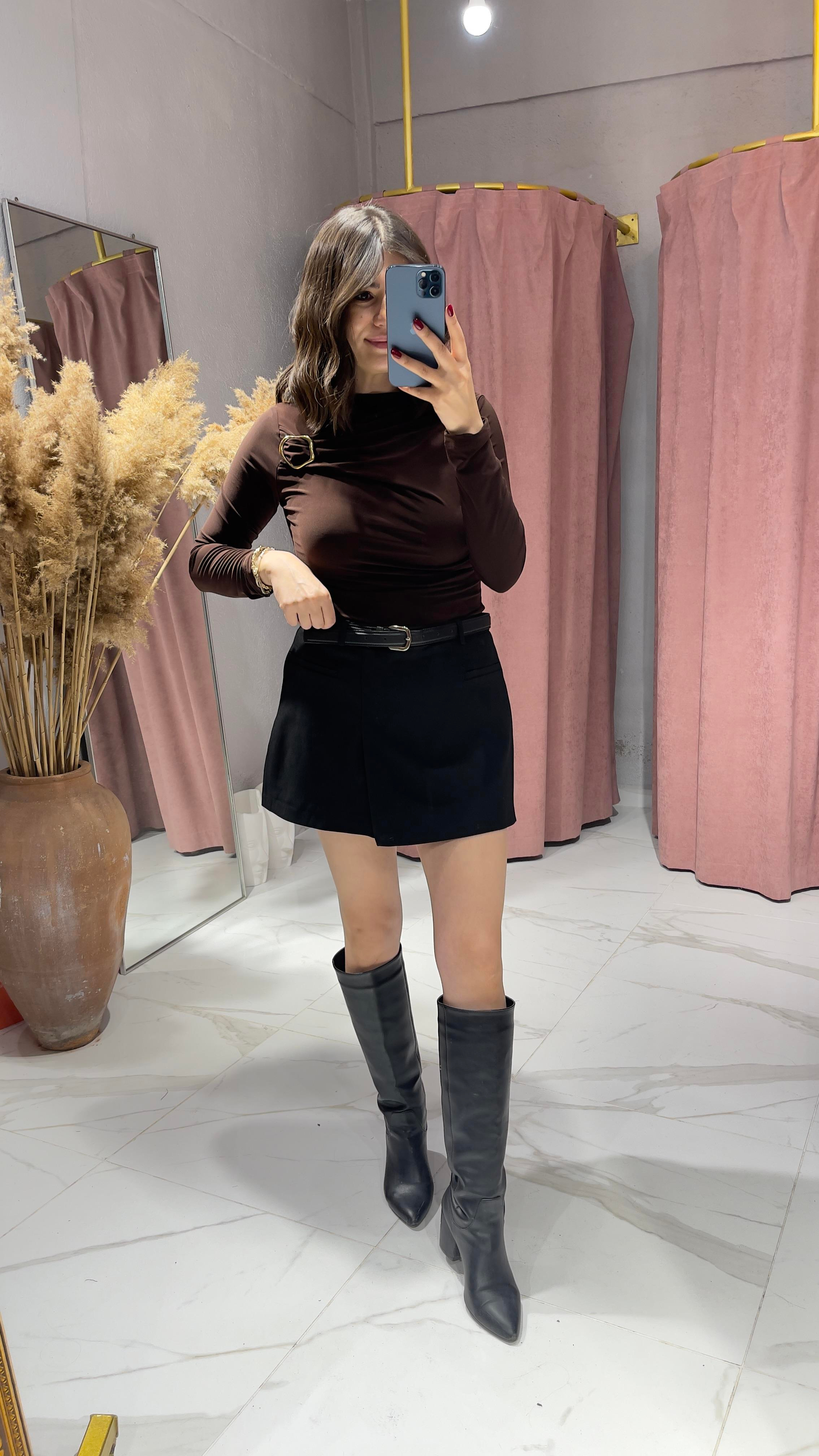 TOKA DETAYLI SİYAH BLUZ TOKA DETAYLI BORDO BLUZ
