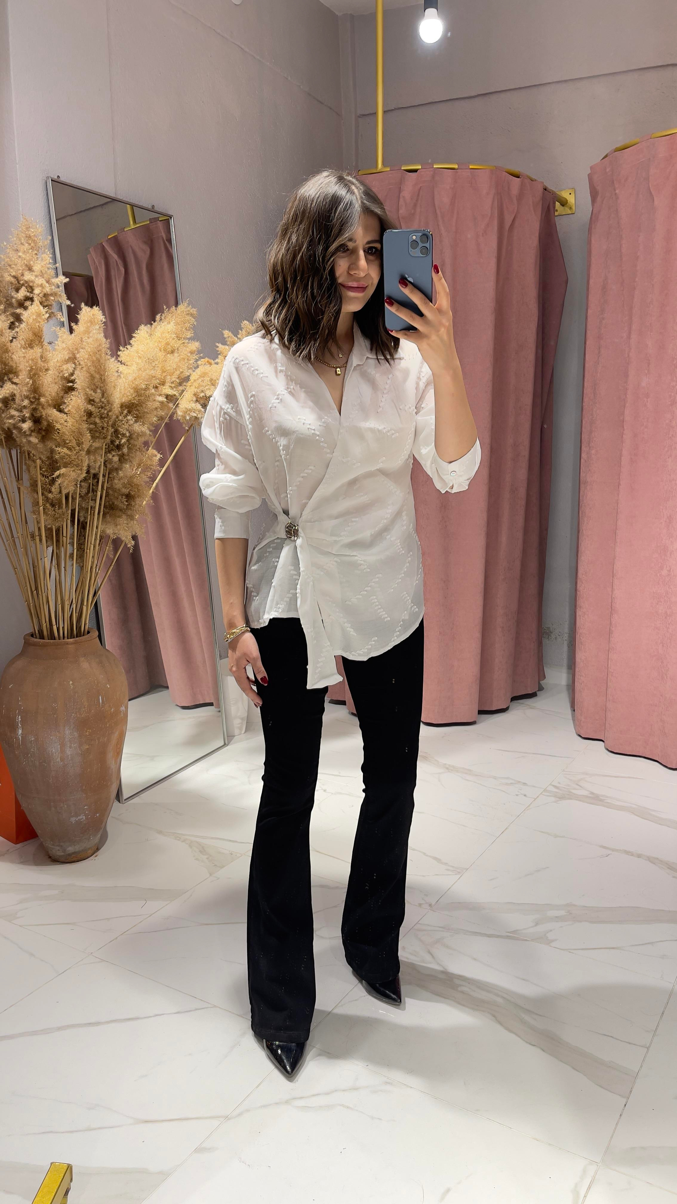TOKA DETAYLI KRUVAZE BEYAZ  BLUZ