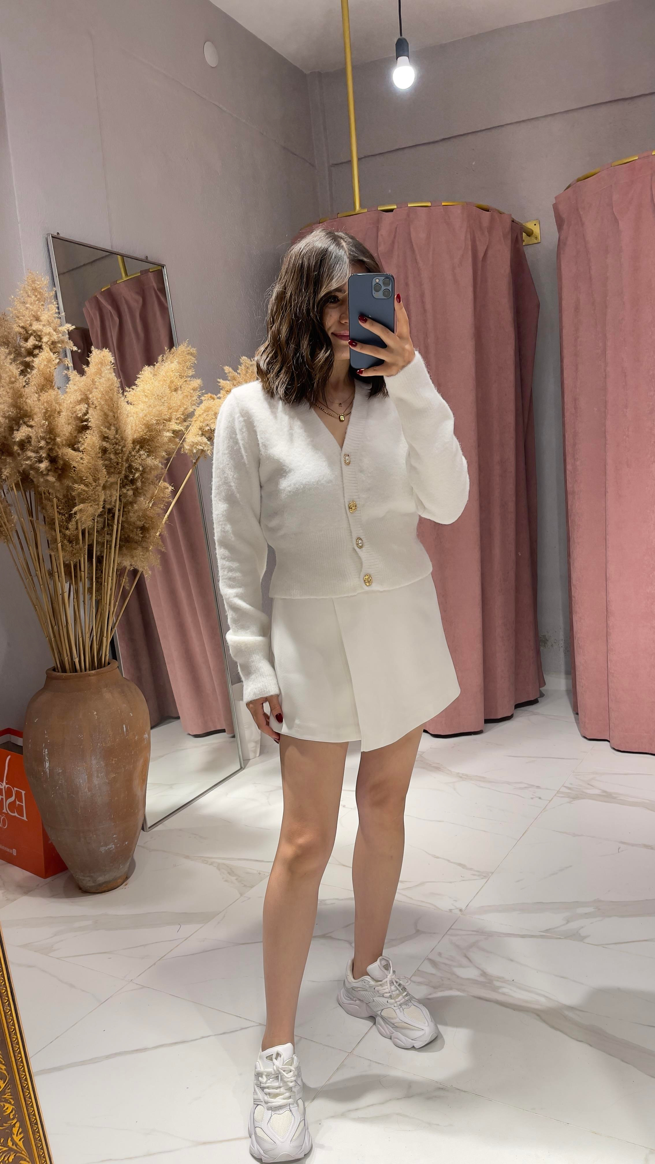 V YAKA DÜĞMELİ EKRU TRİKO HIRKA
