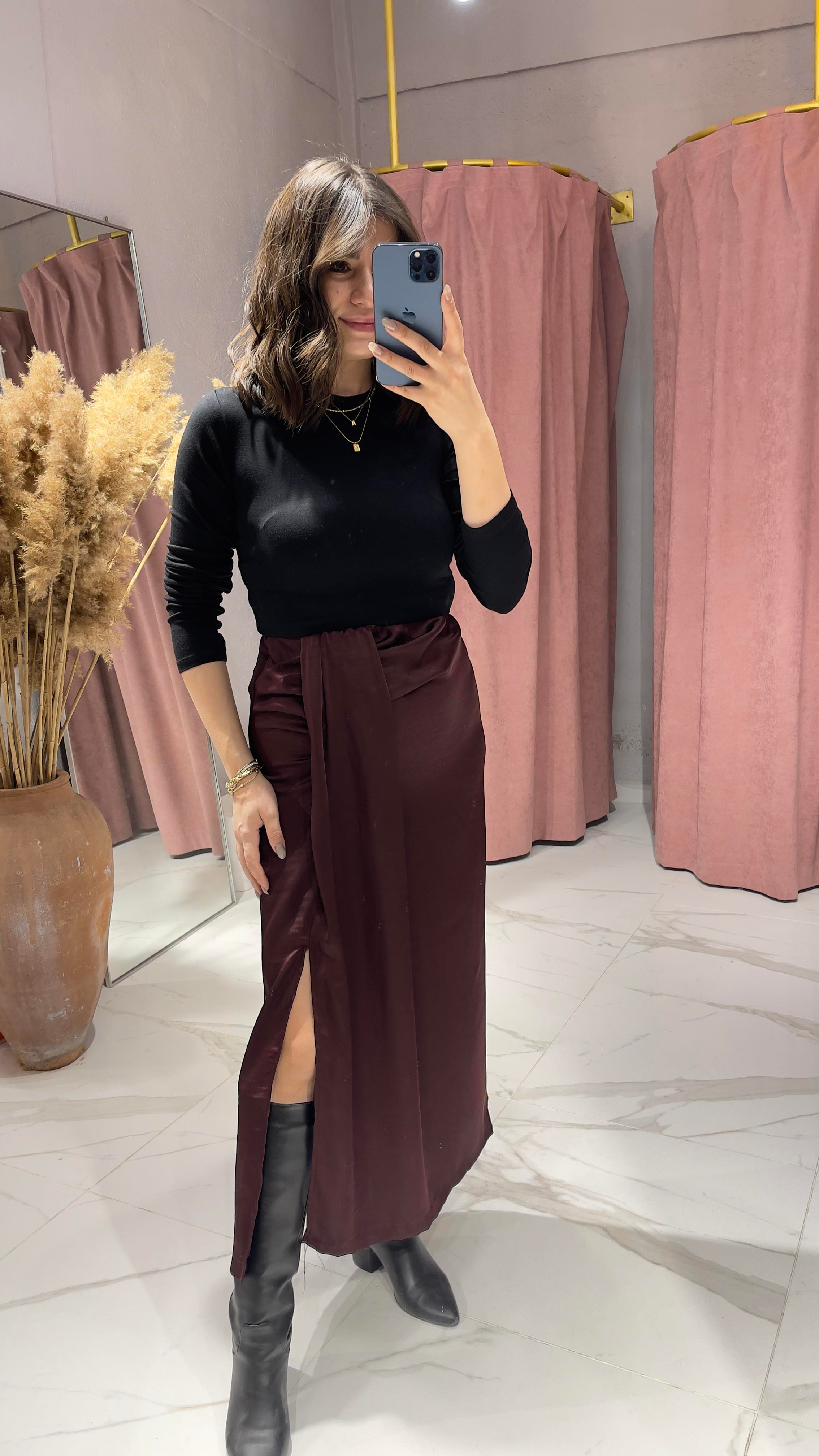 YIRTMAÇ DETAYLI MÜRDÜM SATEN ETEK